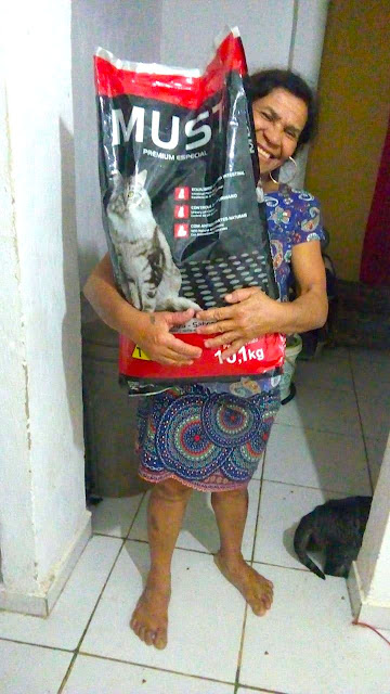 Last year I met with a woman (Ruth), who I have known for a while in seeing her almost everyday. She mentioned back in 2016 that she had many animals and needed help. I wanted to see how I could contribute. She would contact me about once a month in need of food for her animals. So, I would buy her cat or dog food. On my tours I would talk about her project and then people began donating money for the purchase of food. I would contact her, we would meet at the Rocinha Pet Shop and I would buy the food for her. I would take a photo of her with the food and the receipt showing the date of purchase and I would email it to the person who donated. She understands why I do this and she is benefitting from the promotion of her animal shelter which she started construction in mid 2017. The more people can see her need, the more potential to receive help. We also were able to get another person to help her. Charmaine in Copacabana helps buy food too when she can.